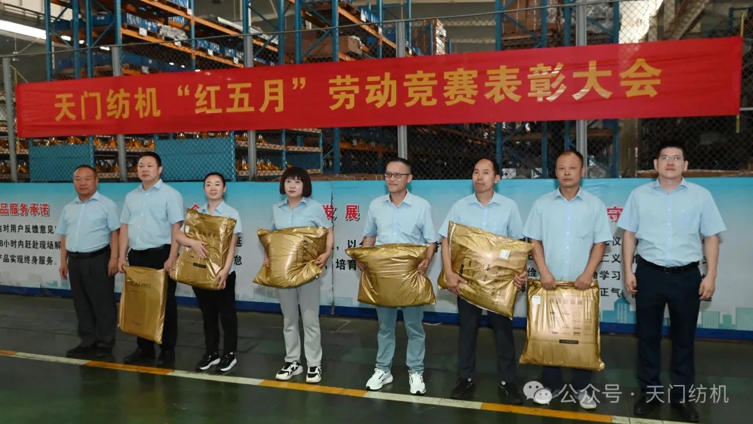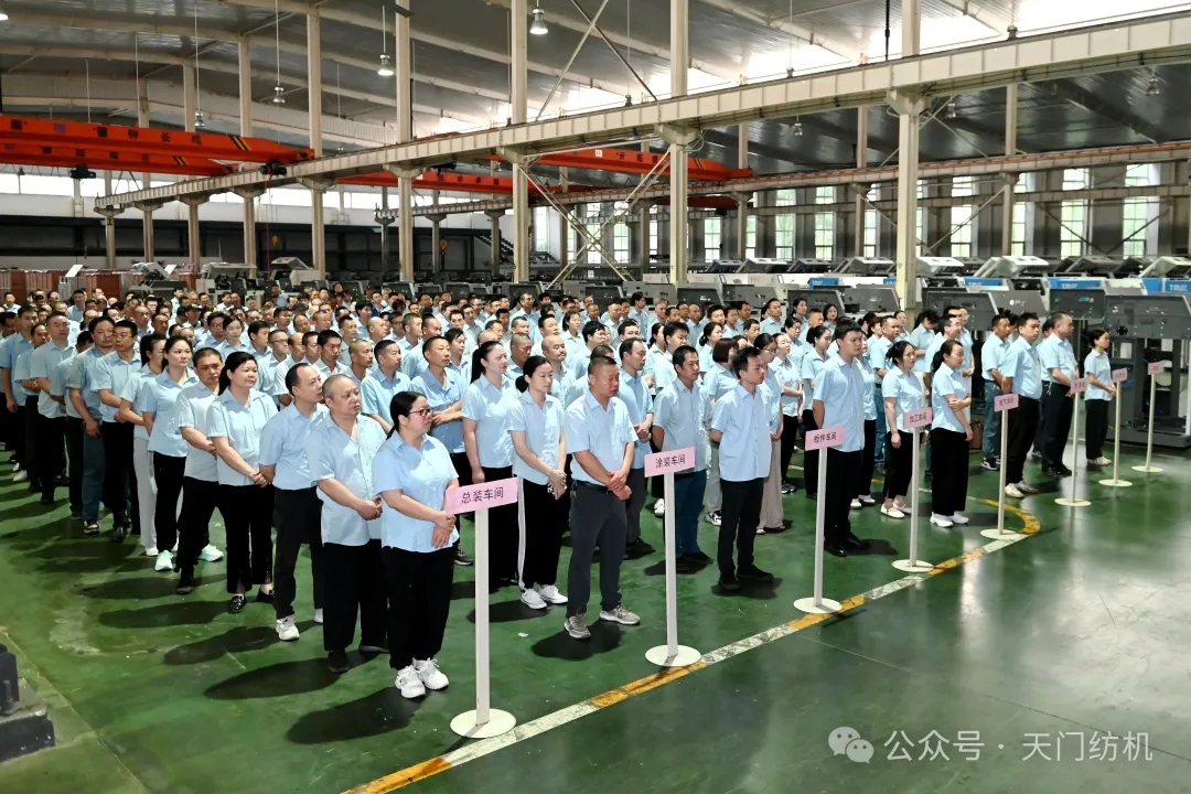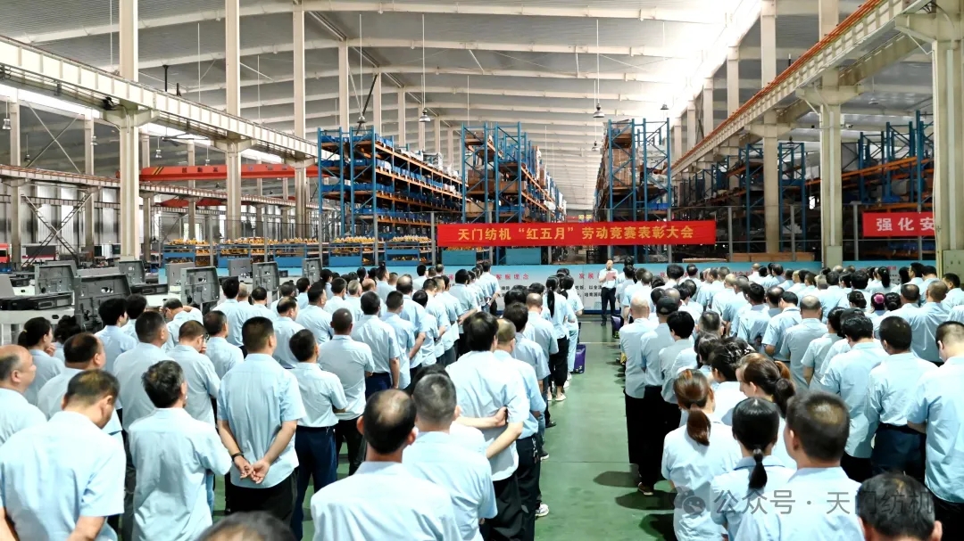 晨光微熹,映照勞動者的身影。2025年6月27日早上8:00,天門紡機(jī)全體員工齊聚總裝配區(qū),舉行“紅五月”勞動競賽表彰大會,禮贊拼搏者,致敬奮斗人!